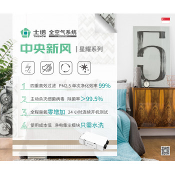 士諾新風星耀系列,讓每一個家庭都能全屋凈化,讓每一份呼吸都潔凈如新。士諾新風星耀系列采用Pure ESP凈電滅菌過濾技術,能夠在補充新鮮有氧空氣的同時,做到祛除霧霾、殺滅細菌、分解VOC、臭氧負增加、恒溫恒濕等功效,并且凈電模塊只需水洗無須更換,做到低成本享受舒適生活。產品特點:殺菌消毒、全屋新風、多重過濾、智能控制、靜音設計!