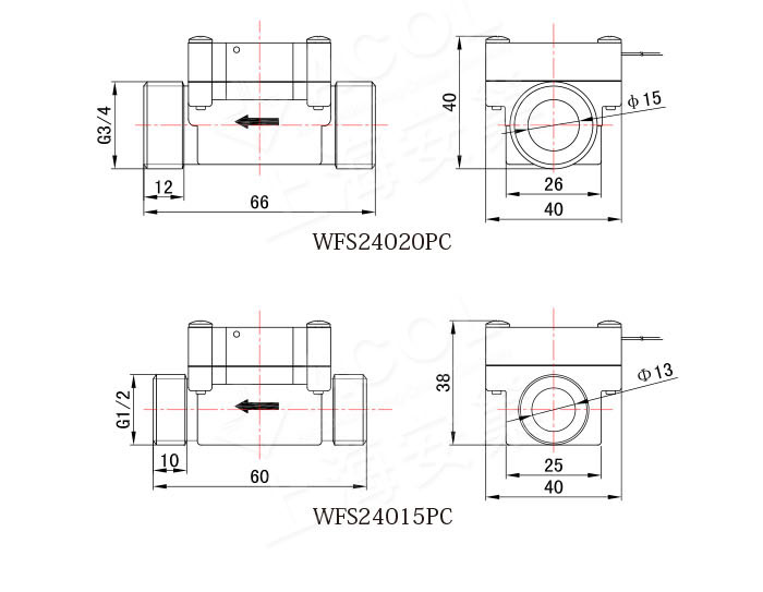當小口徑流量開關垂直安裝時,應裝在由下至上流動的管段上。