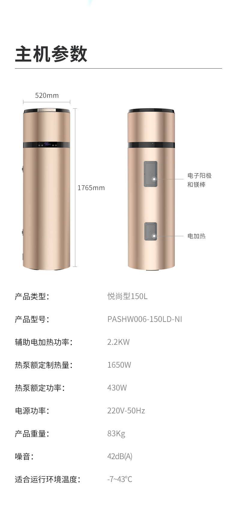 Phnix/芬尼空氣能熱水器悅尚型家用一體機熱泵150升空氣能熱水器