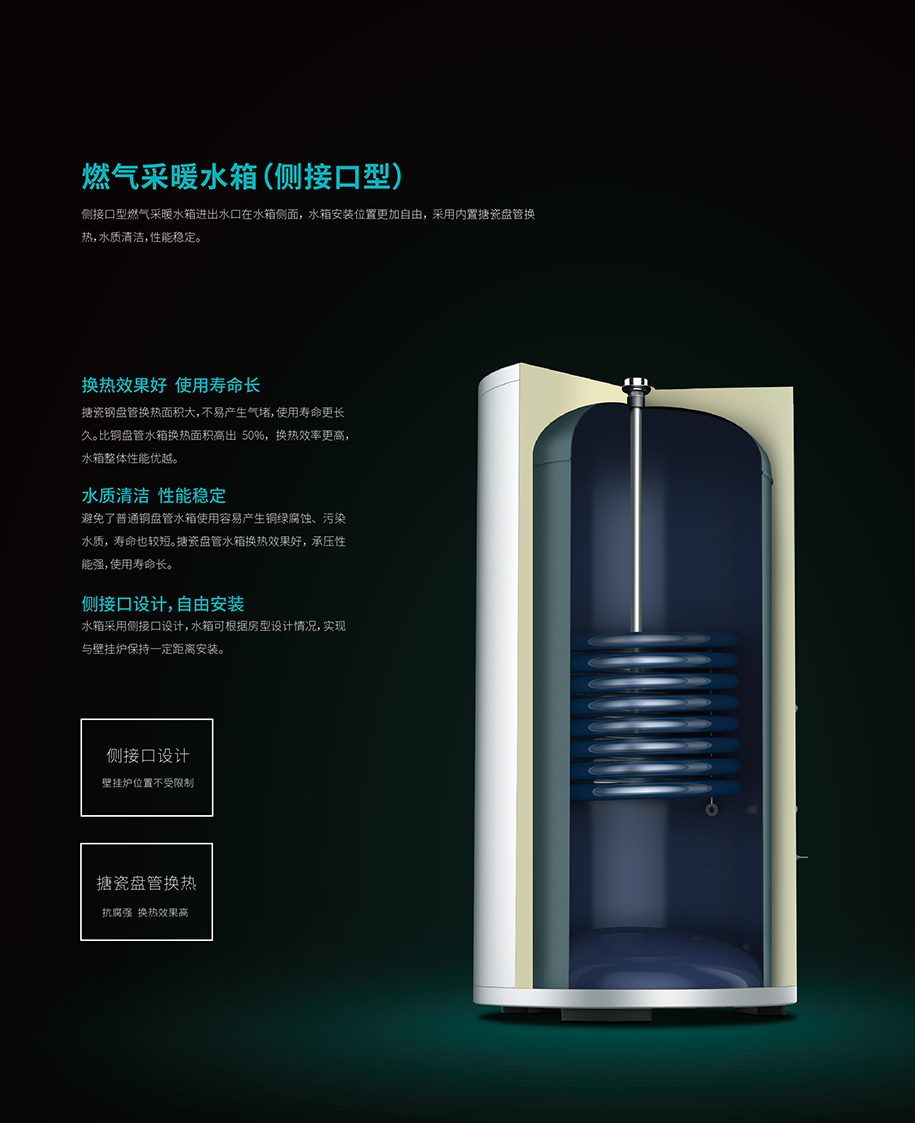 側(cè)接口單搪瓷盤管水箱
