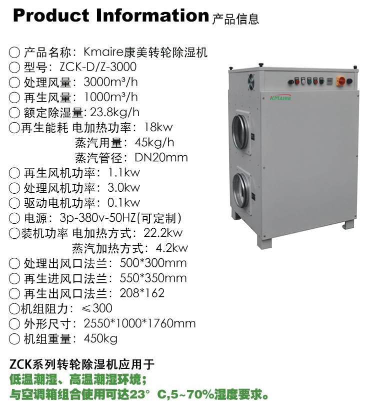 1.可精準地達到用戶要求的空氣含濕量,出風溫度由用戶自行控制。